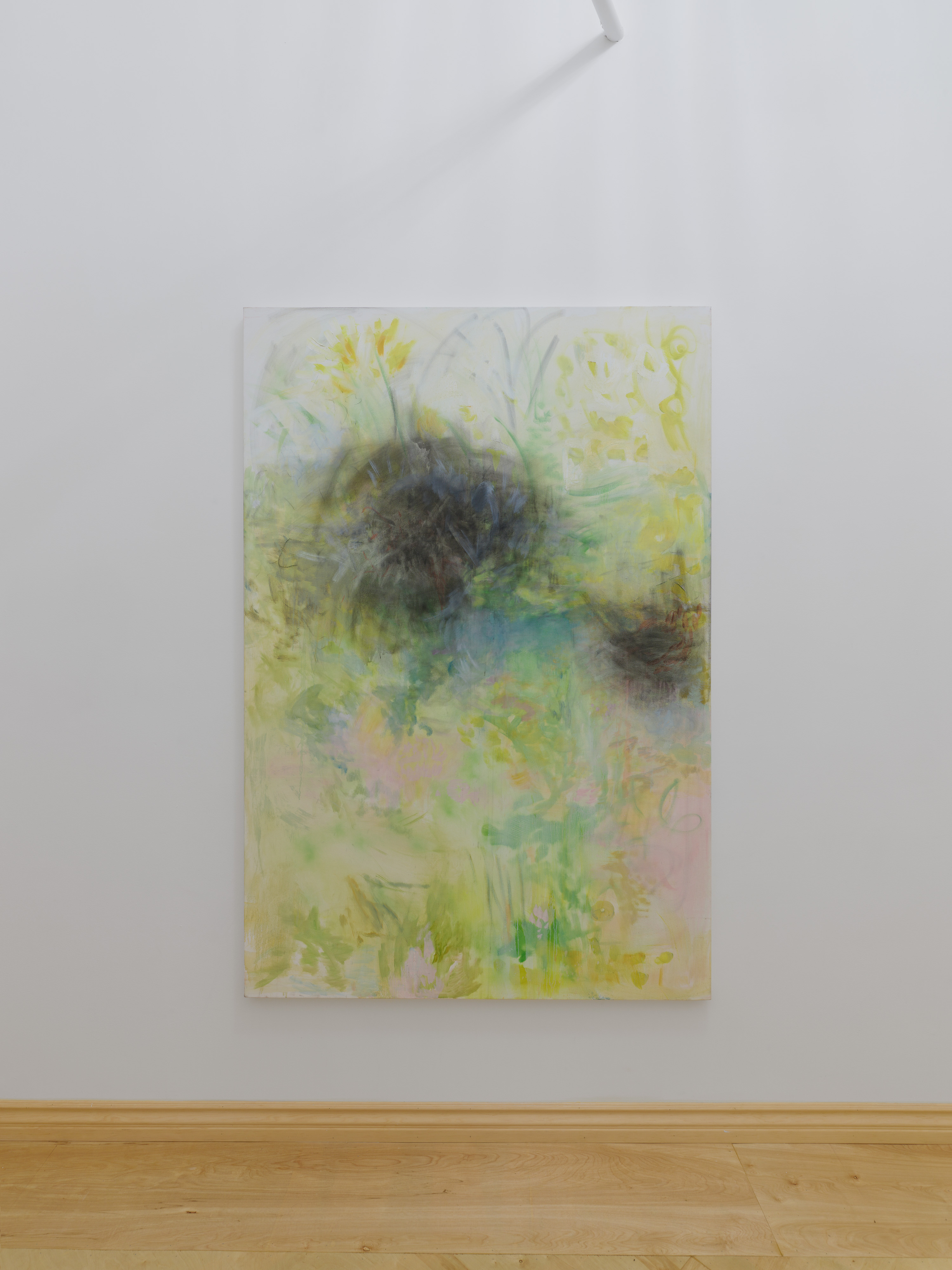 Zoe Koke, Yellow Bloom, Oil and charcoal on canvas, 50 x 74 in, 2022