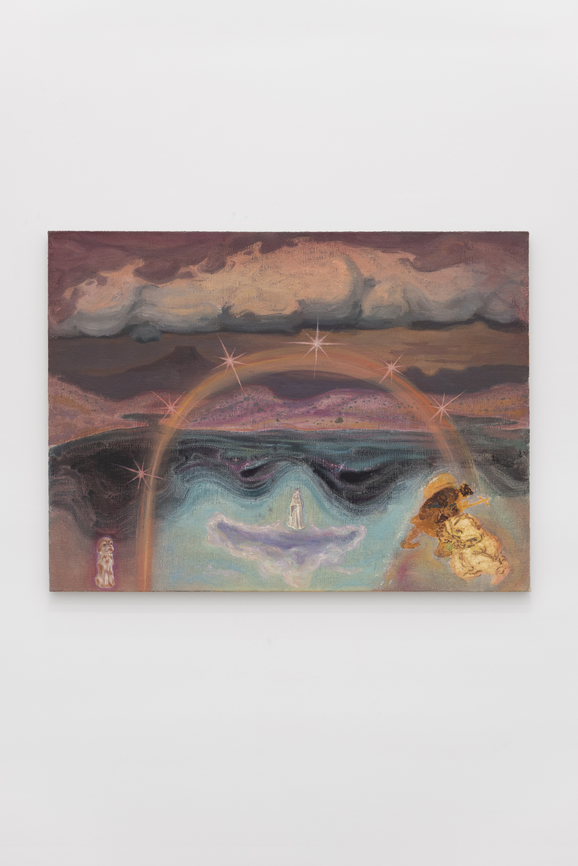 Painted in situ and attuned to the immediate surroundings of their conception, Will Bruno’s location-absorbent canvases capture awe for the natural world elaborated with symbols and allegorical figures sampled from regional history, religion, literature, and lore. For the artist’s exhibition with Smart Objects, the tumultuous and storied region of Northern New Mexico serves as backdrop and subject.